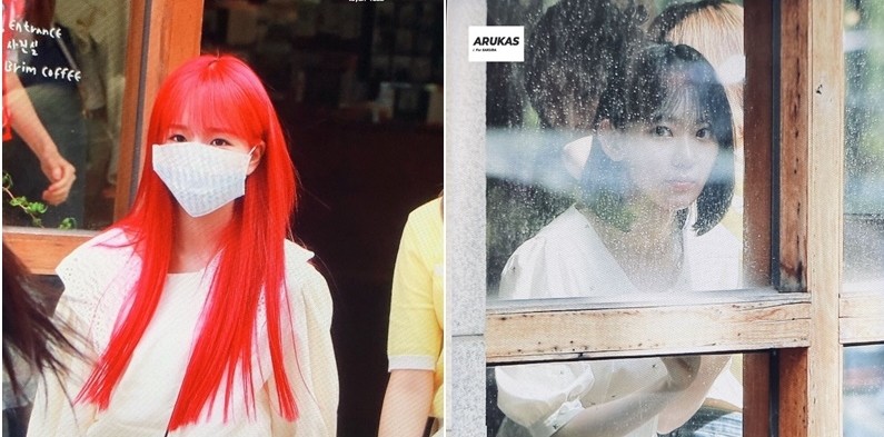 아이즈원 분당 카페 목격, 바뀐 헤어스타일·머리색 조유리 빨간머리, 미야와키 사쿠라 단발